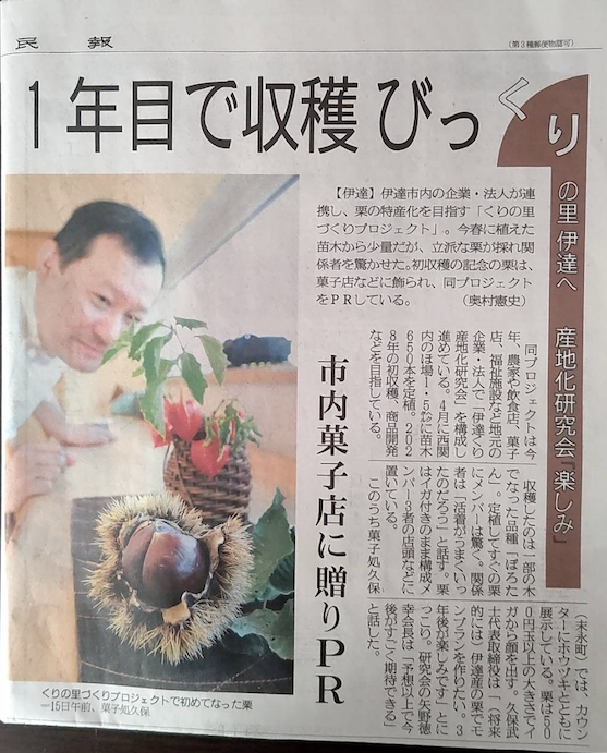 室蘭民報でも『1年目で収穫びっくり くりの里伊達へ、産地化研究会「楽しみ」』として紹介されました。